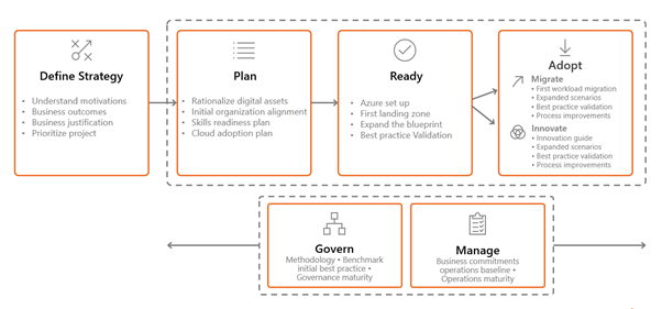 The below diagram shows the Cloud Adoption Framework: