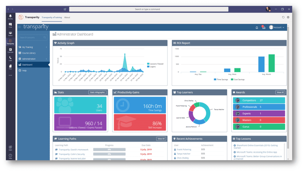 Transparity’s Training and Adoption Portal (TAP) ensures that you are getting the most out of your investment in Microsoft Cloud licensing by offering a flexible learning platform where users can access training and information on their terms. The platform assists users in embracing digital transformation with courses and documentation that they can refer back to when desired.